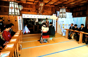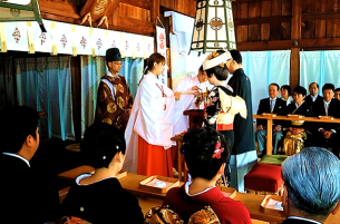 新しい人生の門出にあたり、お二人がこの先、永く互いに助け合い、支えあい、明るい家庭を築いていくことを御神前にてお誓いいただきます。